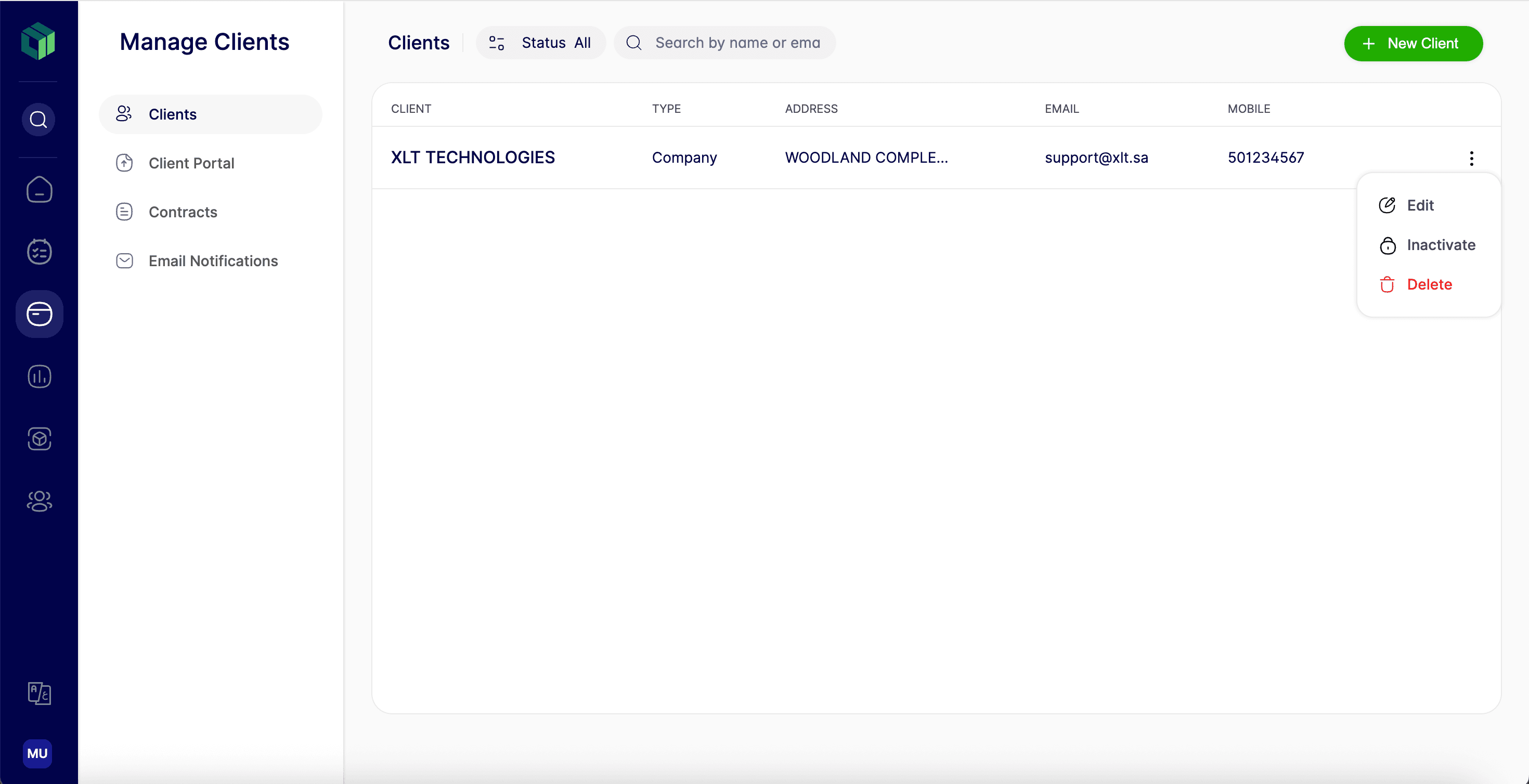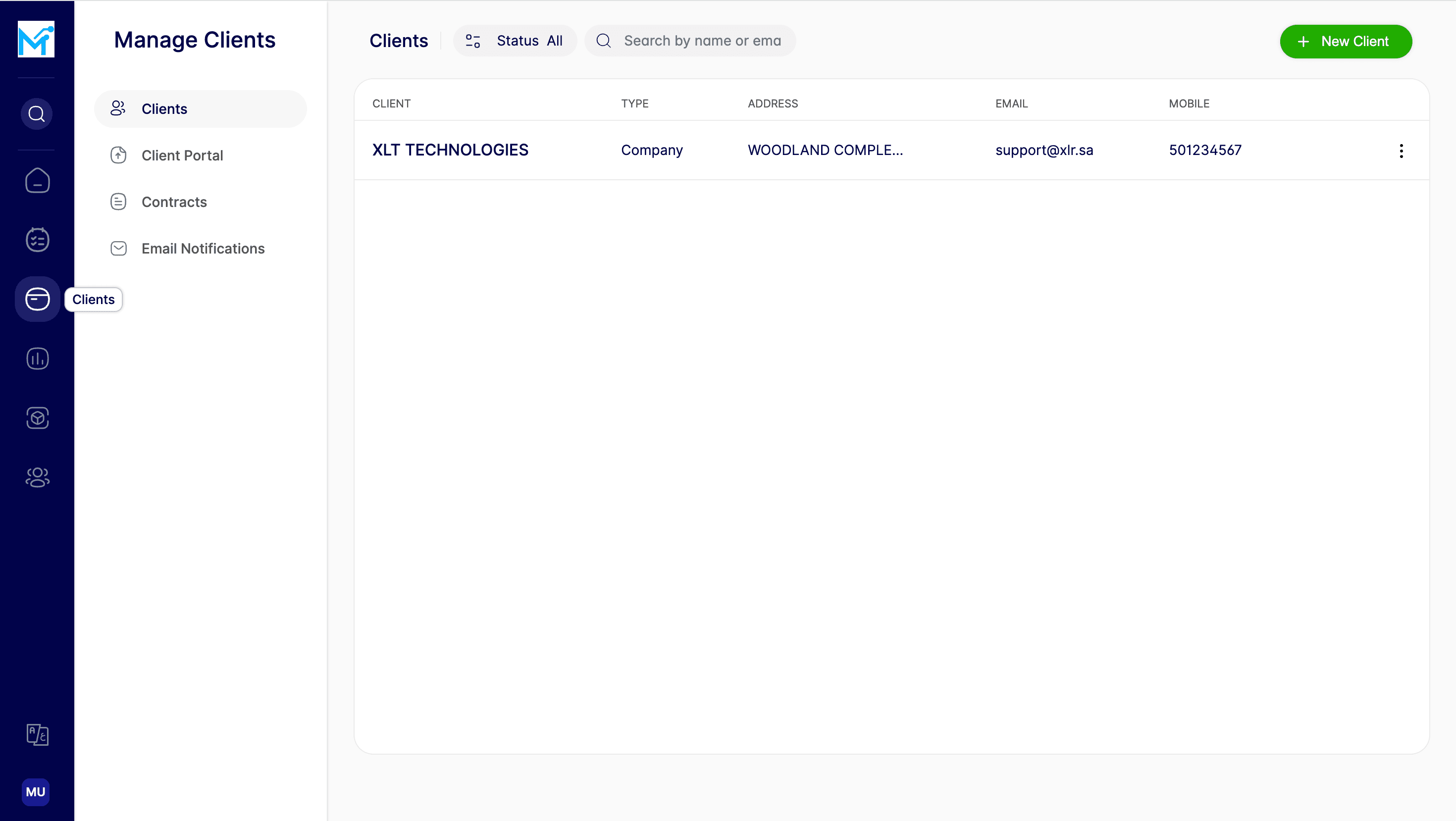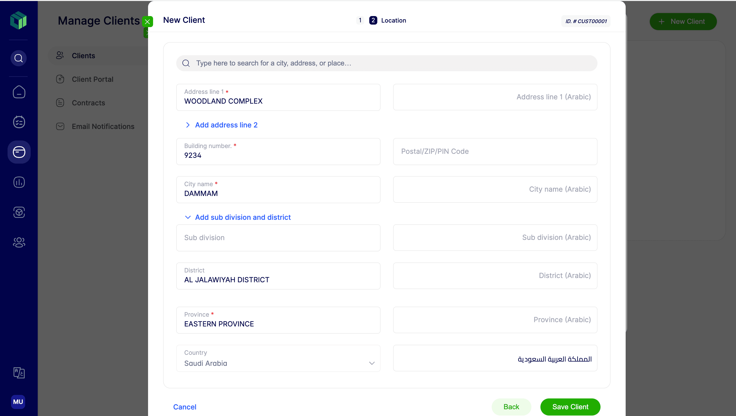 After completing all fields, click “Save Client” to add the client to your list.